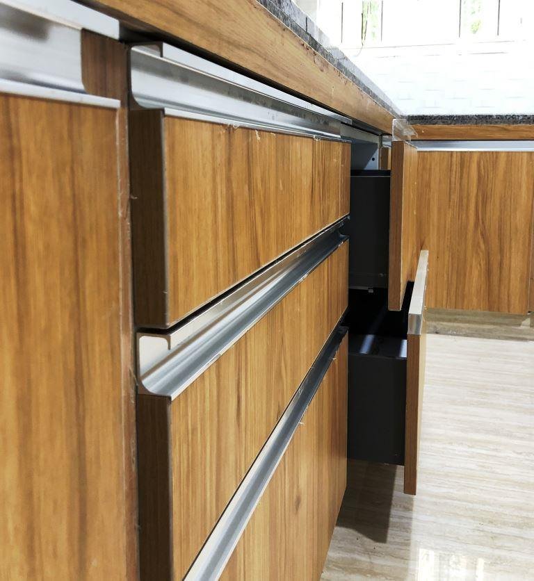 G Profiles are premium aluminium handleless channels designed to give modular kitchens and wardrobes a sleek, modern, and minimalist look. Their unique “G-shaped” design provides an easy grip from the top or side, eliminating the need for traditional handles. Made from high-grade aluminium, G Profiles offer excellent durability, a refined appearance, and seamless integration with all types of cabinets and drawers.